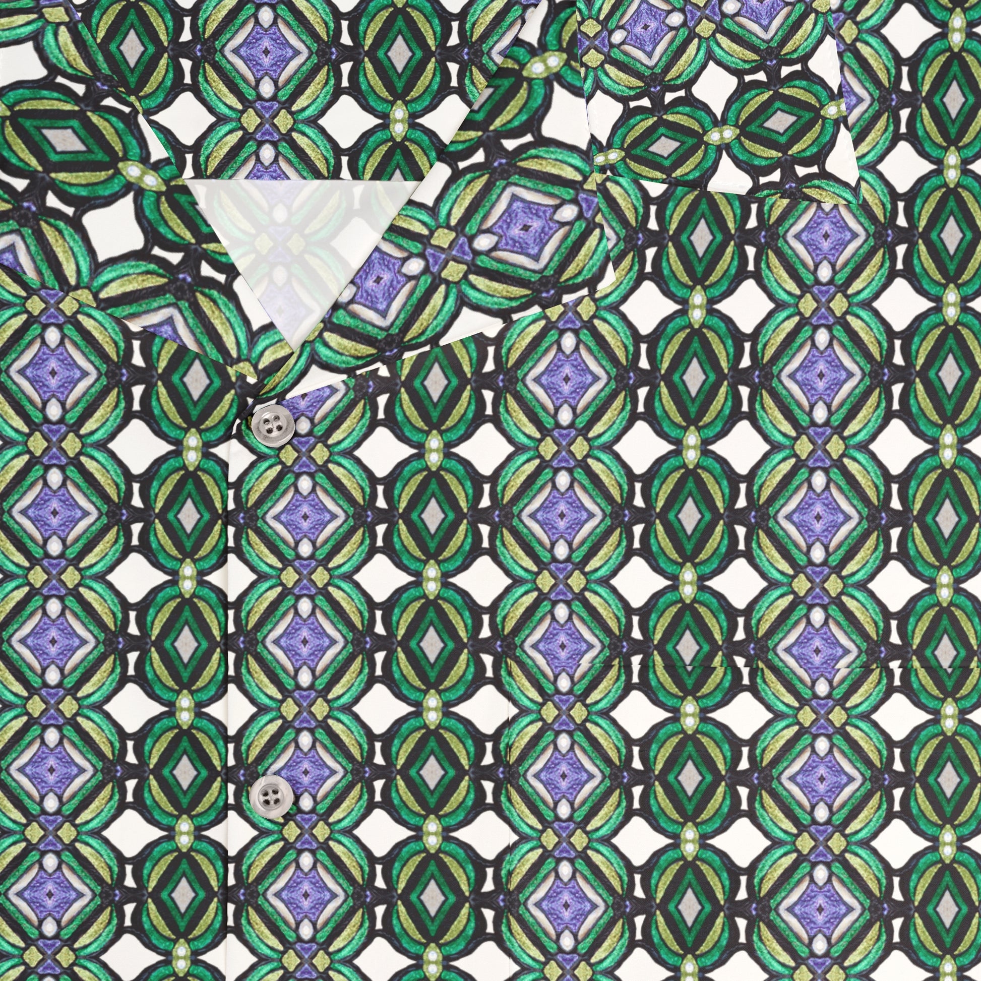 Made to have a boxy fit and a notch lapel collar that are perfect for any laidback scenario, these shirts come with a handy chest pocket and a 95% polyester and 5% spandex fabric for silky comfort. Choose between black or white buttons & customize it to taste.